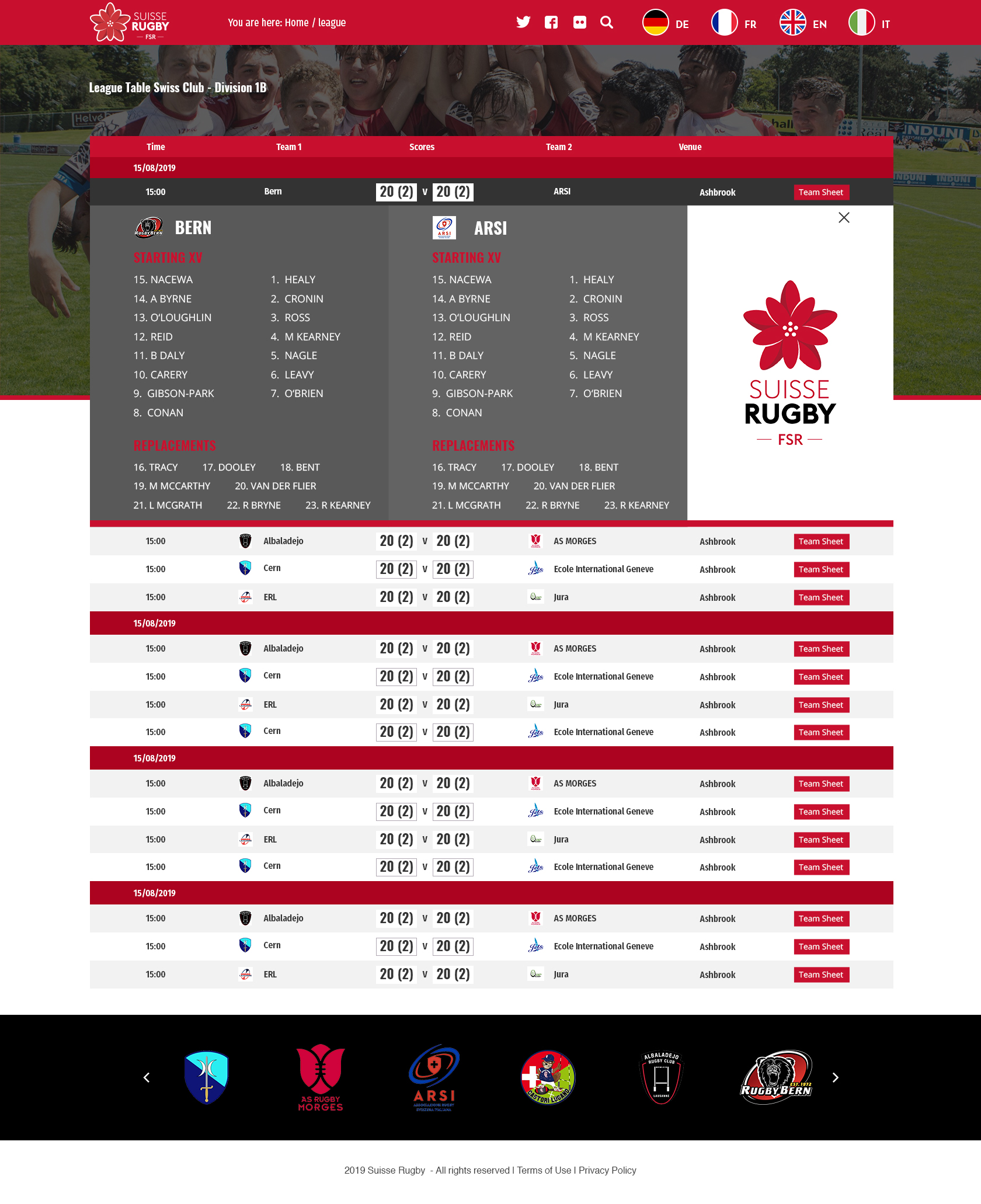 Suisse Rugby Results, Team Sheet, Roster Data (API's from SportLomo)