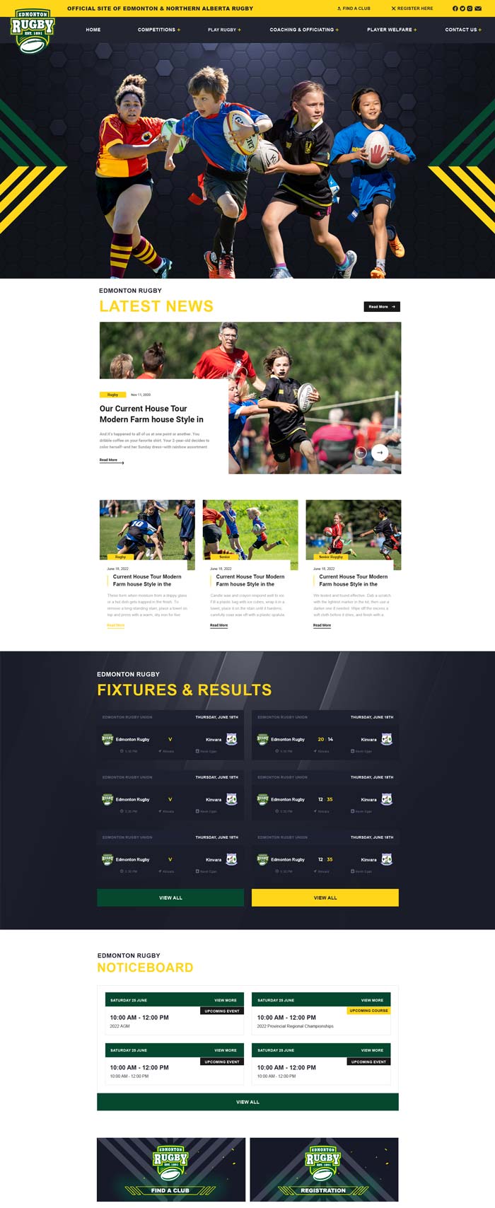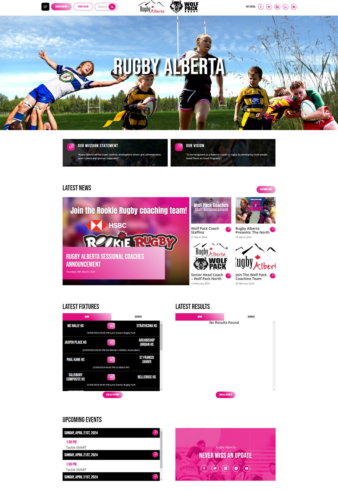 Rugby Alberta, Canada new website designed by SportLomo. Launched April 2024