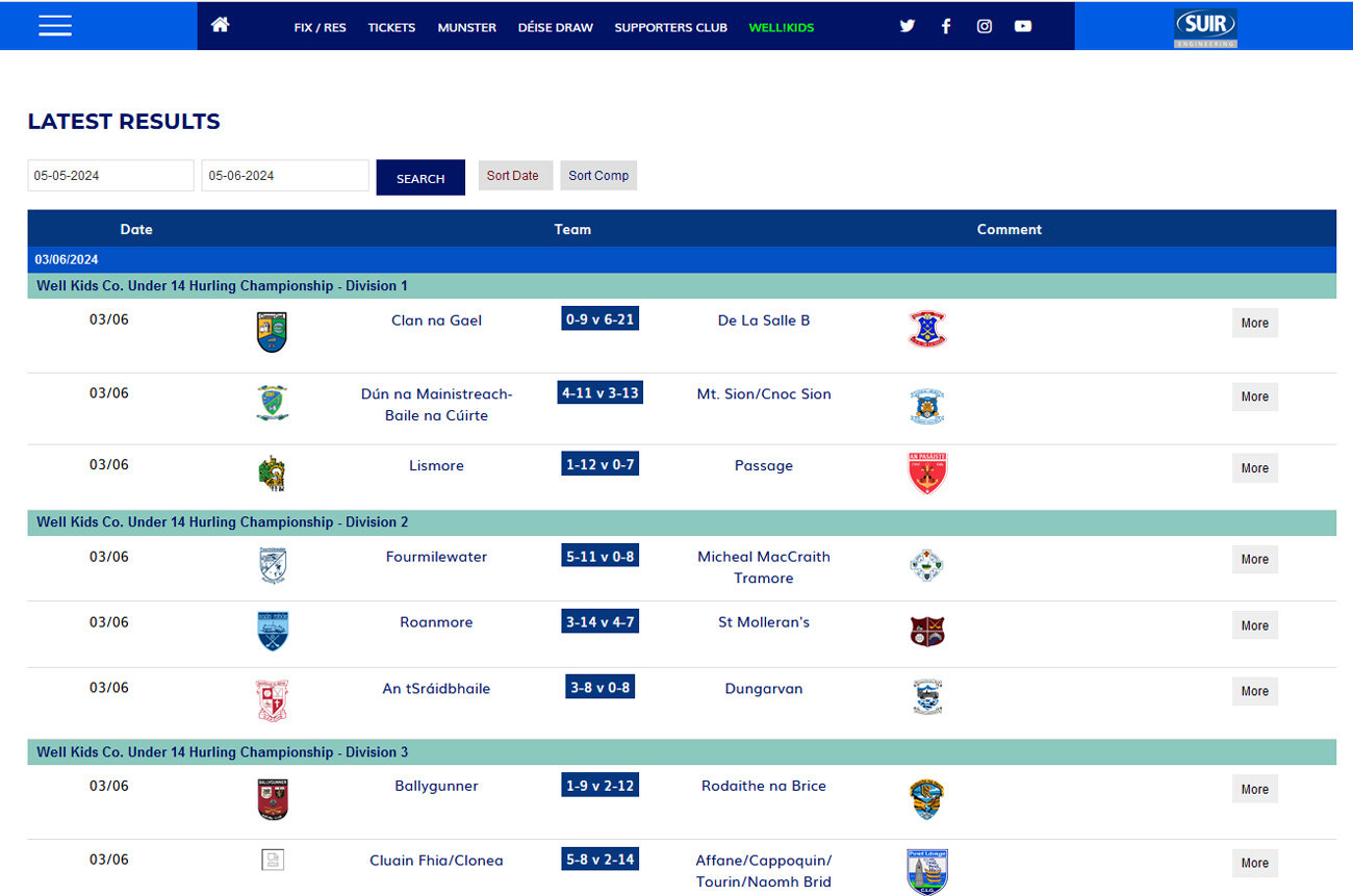 Latest results API feed to Waterford GAA website