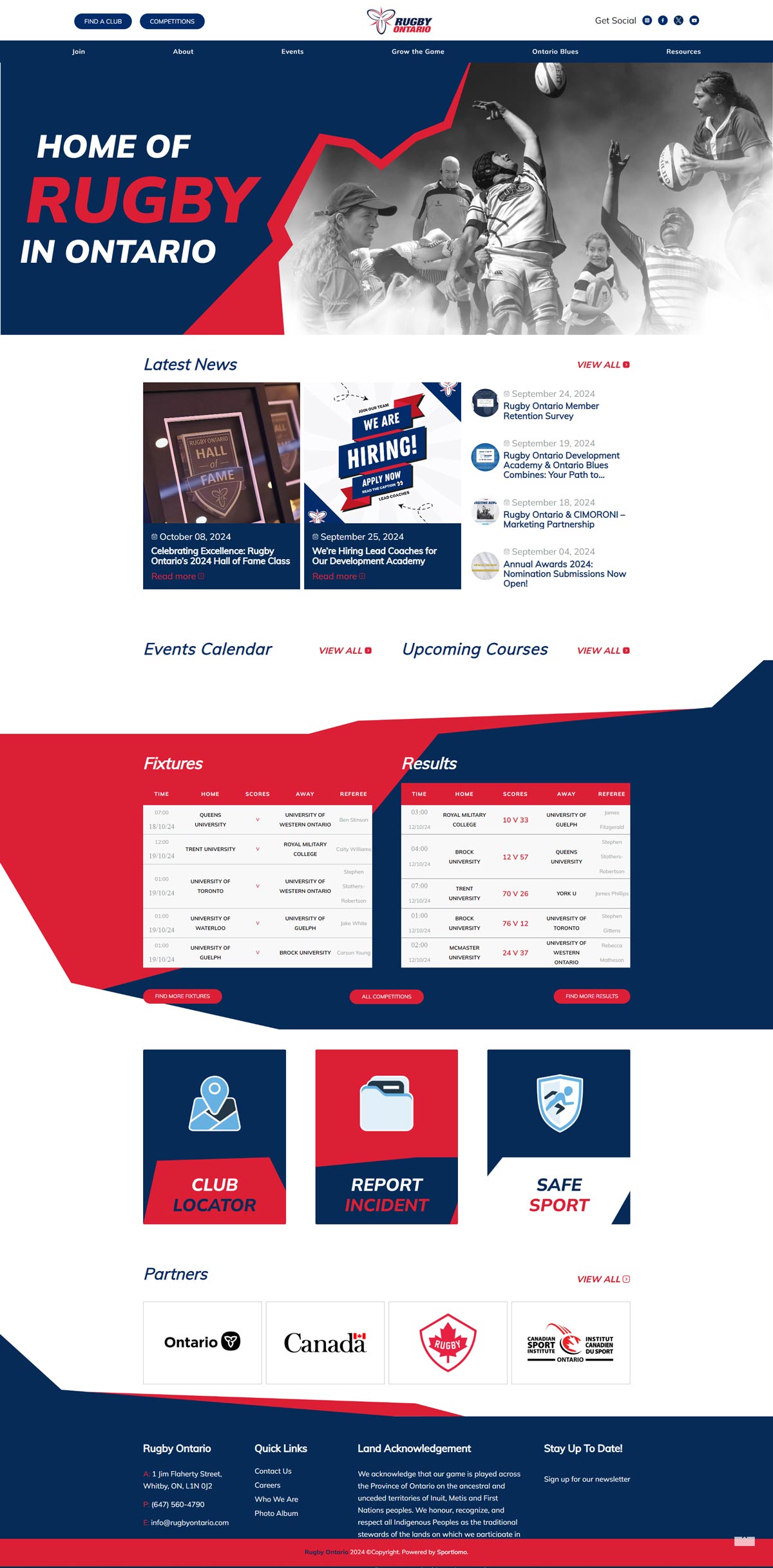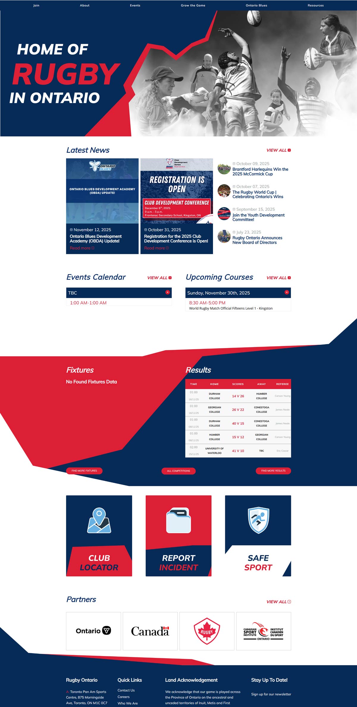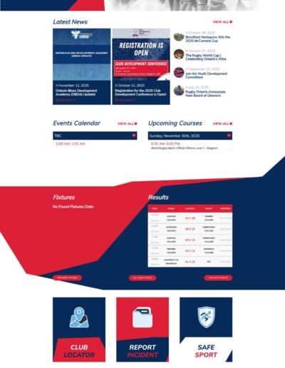 Rugby Ontario website with live scores, fixtures, schedules and tables