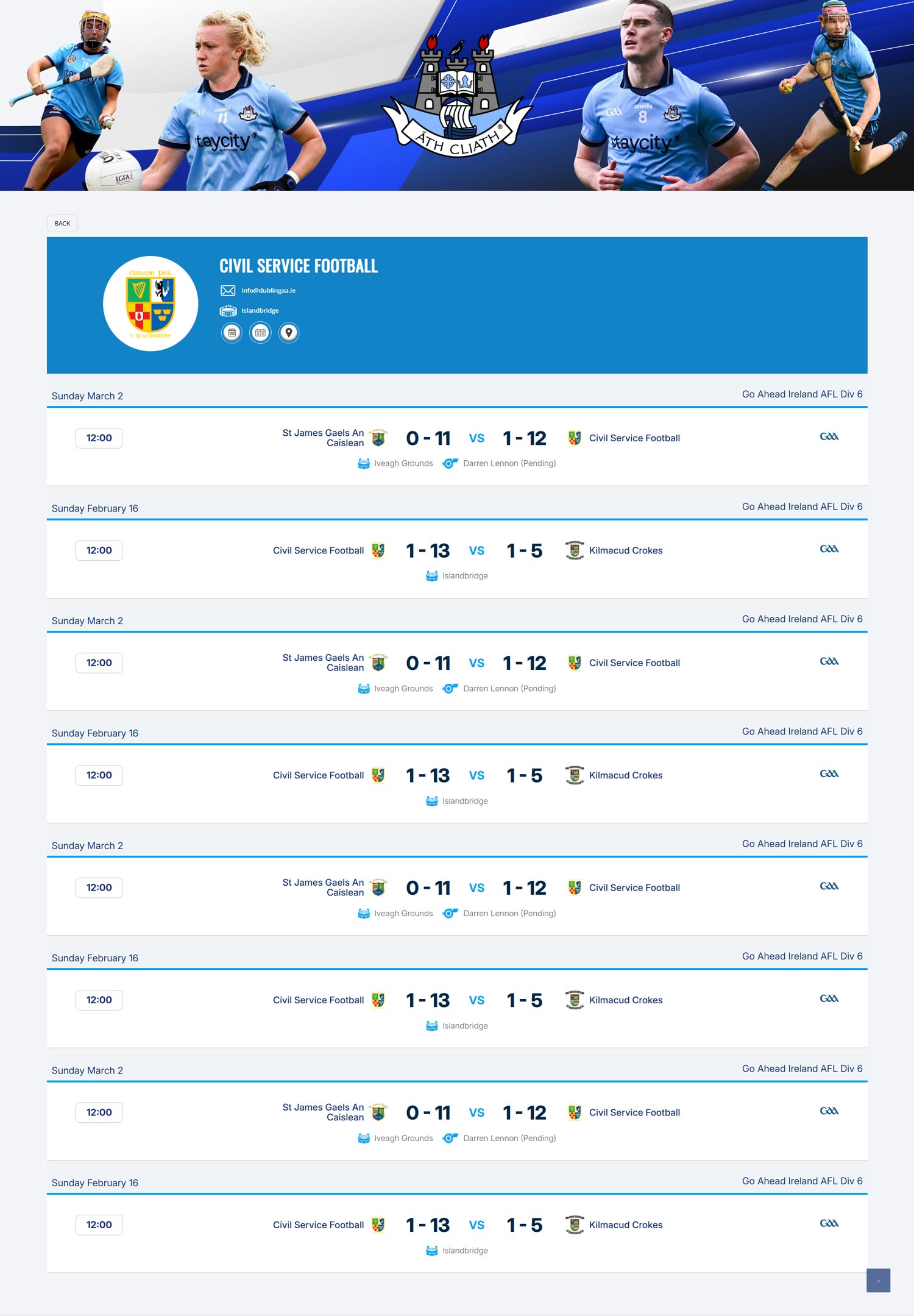 A Club Live Score feed (API) from SportLoMo to Dublin GAA Club