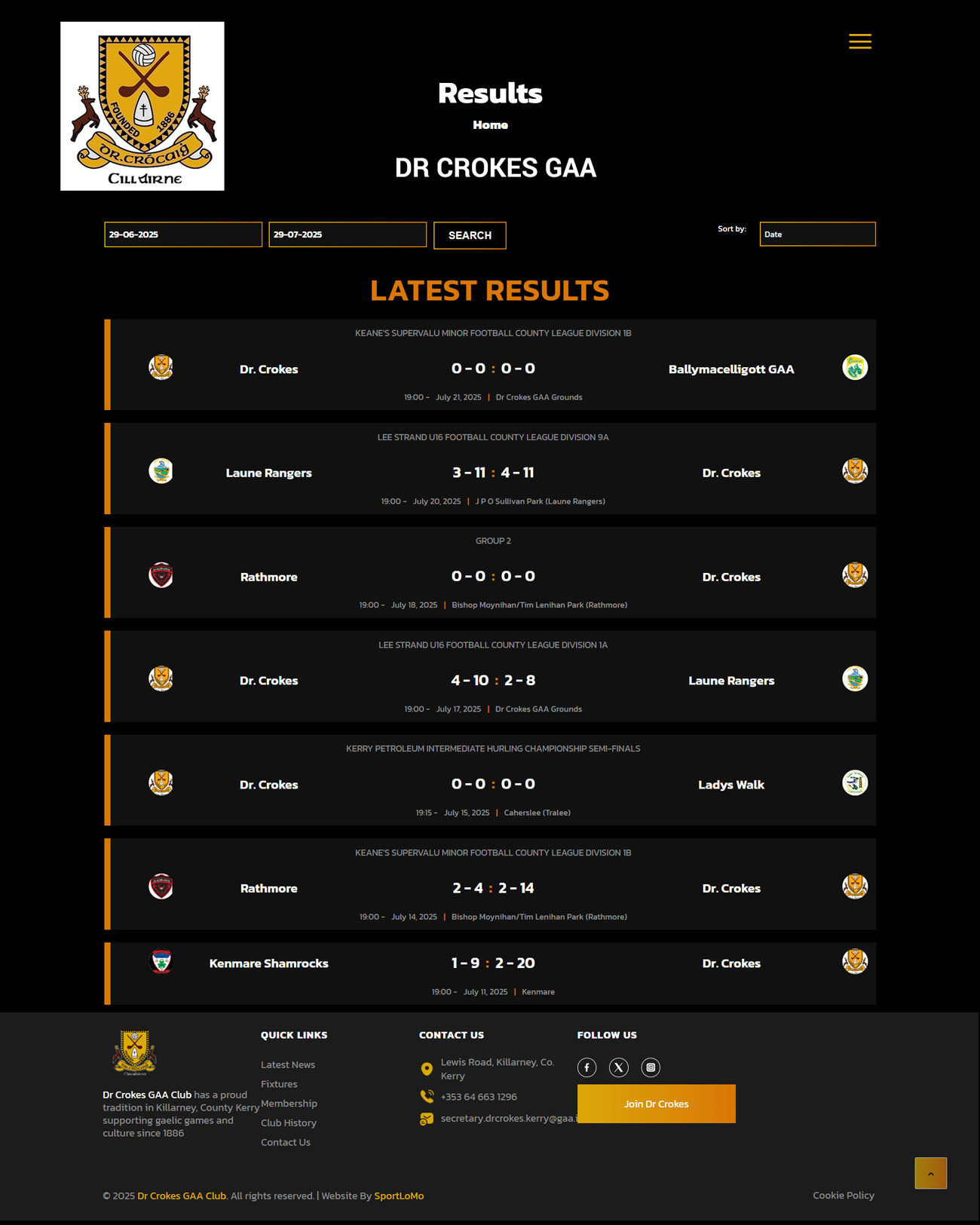Dr Crokes GAA Club website receives scores in realtime to its SportLoMo developed website